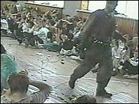 ويقول داميان جرامتيكاس مراسل بي بي سي في موسكو إنه يعتقد أن عددا كبيرا من الرهائن من تلاميذ المدرسة نفسها، كما تشير بعض التقارير إلى أن الخاطفين صفوا الرهائن أمام النوافذ كستار يمنع قوات الأمن من شن أي هجوم.