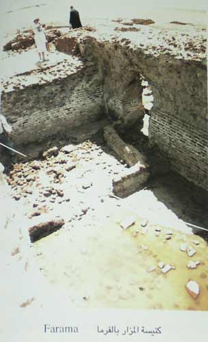 وقامت بعثة من مصلحة الآثار المصرية بكشف آثرى فى منطقة الفرما تحت إشراف د/ جاب الله الأمين السابق للمجلس الأعلى للآثار , وطانت نتيجة البحث فى المنطقة أكتشاف الكاتدرائية الكبرى , وطافوس ألاباء , وبئر أثرية , والمعمودية , ومن اعظم الآكتشافات ألأثرية أكتشاف ثلاثة هياكل عظمية تحت المذبح - ونقلت بهض عظام زرفات قديسى الفرما إلى أيباريشية بورسعيد بمعرفة نيافة الأنبا تادرس لأن الفرما تابعة له , وقد قابل نيافته البابا وأطلعة على ما تم كشفة وعلى صور الرفات .إكتشاف رفات ثلاثة من القديسين المسيحين