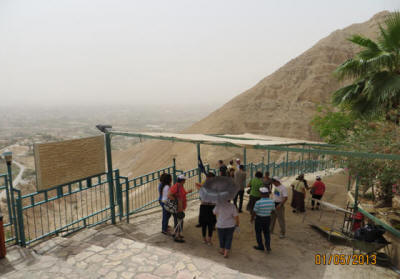 الصور الثلاثة الأخيرة مأخوذة من التجمع الآشورى على الفيس بوك الدير الذي يقع في مدينة القمر "أريحا" الأقدم على مر التاريخ، جذب الكثير من السياح للمكان لا سيما وأن شكل البناء وموقعه كان له الأثر الكبير في ارتياده. "دير قرنطل" أو ما يعرف بـ "جبل الأربعين" هو بناءٌ ملتصقٌ بصخور ذلك الجبل، فكان من المثير بالنسبة لنا أن نصل إلى هدفٍ بدا صعب الوصول، لكن حين تساءلنا عن طريقة الوصول لقمة الجبل الذي يتميز بحدية وعمودية كبيرة، أخبرنا المرشدون بأن الوسيلة إلى ذلك هو "التلفريك" أي القطار المعلق!. وكان الزوار والسياح كانوا يصعدون الجبل على الأقدام قبل وجود التلفريك، حيث كانت تتراوح المدة التي يقطعون خلالها المسافة الشاهقة ما بين ساعة ونصف إلى ساعيتن حتى يصلوا إلى المكان. وبالفعل توجهنا إلى مركز "التلفريك" البديل عن المشي والتسلق، وفي أقل من خمس دقائق كنا على مقربة من دير قرنطل المُشّيد في الصخر، وهناك كانت لنا جولة أخرى حيث تصل آخر نقطة للتلفريك مع الدير أكثر من 180 درجة مبنية في الجبل، وكان لزاماً علينا من أجل الوصول للدير أن نصعد هذا الدرج المتعب جداً. الصعود إليه مغامرةٌ منعشة بحد ذاتها، كيف لا وسحر إطلالة الطبيعة يتجلى من فوقه!، ليرى السائح من حوله مدينة أريحا وجبال الأردن والبحر الميت. "أسس الدير الأرشمندريت إفراميوس سنة 1892، وقامت الهيئات المحلية والدولية بترميمه عدة مرات وإجراء صيانة له كونه في قلب الجبل الصخري الذي يتعرض لانهيارات وغير ذلك، وأول من فكر في المحافظة على قدسيته هي الملكة هيلانة، حيث أقامت عليه تشييداً قديماً منذ عام 325 م". تقول الروايات بأن قرنطل تعني الأربعين، ومع أن مدينة أريحا تنخفض عن سطح البحر ما يقارب 400 متر وهي أخفض بقعة في العالم إلا أن جبل قرنطل الذي فيه الدير يرتفع عن سطح البحر 350 متر وهذا يدلل على ضخامة الارتفاع الذي منه تشاهد مدن الأردن وجباله.