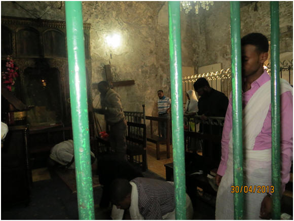22- الكنيسة القبطية وأسمها كنيسة الأربعة حيوانات الغير متجسدين التى أستولى عليها الأثيوبيين من الأقباط ويصلون فيها ومتميزة بالفن القبطى حتى ألآن دير السلطان دير أثري للأقباط الأرثوذكس يقع على سطح كنيسة القيامة يمكن الوصول غليه من داخل كنيسة القيامة ، وله مدخل آخر هو حارة النصارى وتبلغ مساحته حوالي 1800 م2. وقد قام صلاح الدين الأيوبي بأرجاعه للأقباط بعد استيلاء الصليبيين عليه وجعله مقرا لجنودهم وقادتهم ، ومن يومها وأطلق عليه دير السلطان وترجع أهمية دير السلطان أأنه من أملاكهم فى القدس من القدم كما ان له أهمية خاصة عند الأقباط لأنه طريقهم المباشر للوصول من دير مار أنطونيوس حيث مقر البطريركية القبطيةإلى كنيسة القيامة.