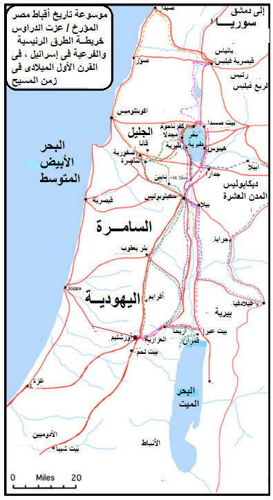 الخريطة الجانبية توضح الطرق الرئيسية والفرعية التى أنشأتها االإمبراطورية الرومانية فى أنحاء الإمبراطورية والتى كانت تساعد فى إزدهار التجارة وسرعة إنتقال الحملات العسكرية وإنتتقال الناس من مكان لآخر وقد إنتقل المسيح من كفر ناحوم مدينتة إلى جميع أنحاء إسرائيل فى هذه الطرق وإستخدم كذلك السفن فى بحر طبرية