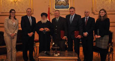 فى 15/3/2015م قداسة البابا ينيب الانبا موسي للقاء وفد الكونجرس أناب قداسة البابا تواضروس الثانى، نيافة الأنبا موسى أسقف الشباب، لمقابلة وفد من الكونجرس الأمريكى برئاسة رانا روراباخر، وبدأ نيافته الحديث بنقل تحيات قداسة البابا للسادة الضيوف، وشكره لهم على اهتمامهم بمصر. وحين دار الحديث عن هذه الأوضاع شرح نيافته لهم المشروعات الأربعة الكبيرة للرئيس السيسى وهى : 1- مشروع العاصمة الإدارية الجديدة، التى ستأخذ الزحام الإدارى من القاهرة الحالية إليها، إذ يدخل القاهرة حاليا ما يقرب من مليون مواطن يومياً لزيارات ادارية وأسرية... 2- مشروع قتاة السويس الجديدة، التى ستكون شريانًا جديدًا للتجارة العالمية من أفريقيا واسيا الى أوروبا والغرب... وما سيتضمنه المشروع من مؤسسات زراعية وتجارية وصناعية وسياحية .. 3- تعمير سيناء، وسيتم تخصيص مساحة شاسعة من الأرض للشباب لاستزراعها. 4- المثلث الذهبى فى: قنا وسفاجة والقصير لاستخراج المعادن والغاز والفحم النظيف. كما أظهر نيافته اهتمام السيد الرئيس منذ بداية توليه الرئاسة بالمحتاجين قائلا: إن الرئيس فى بداية انتخابه تحدث عن ان عدد المحتاجين لمساندة يزيد عن 70% من الشعب ، ولابد من رفع مستواهم سريعاً. وها هى المشروعات العملاقة التى ستوفر فرص عمل كثيرة للشباب، مع دخل قومى متزايد، ونمو فى مجالات الزراعة والصناعة والتجارة والسياحة. وقد ذكر نيافته للوفد أن ثورة 30 يونيو، حين خرج الشعب بالملايين فى كل أنحاء مصر، تأييداً للحكم المدنى، ورافضاً للحكم الدينى، قام بها الشعب ثم خرج الجيش بقيادة وزير الدفاع السيسى، لحماية الثورة خوفاً من دخلاء قد يعملون على إفساد هذه الثورة . وفى نهاية اللقاء عبر عضو الكونجرس عن سعادته بما سمع، وقد أكد له نيافته ما تنعم به مصر من سلام واستقرار، وكيف أنها آمنة، وتستقبل مئات الالاف من السياح والضيوف بسلام وفرح .. |