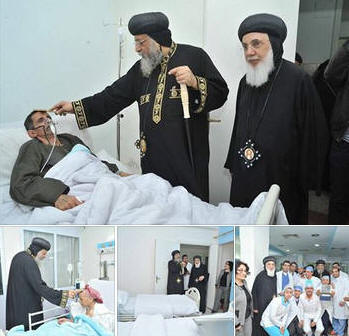 فى 1/3/2015م قام قداسة البابا تواضروس الثاني مساء اليوم بزيارة لمستشفى الراعي الصالح بسمالوط ، حيث افتقد المرضى النزلاء بها وصلى لهم ، كما إلتقى بفريق العاملين من أطباء وهيئة تمريض وفنيين وإداريين ، أبدى قداسة البابا إعجابه بإمكانيات المستشفى وبمستوى الخدمة الطبية المقدمة. |