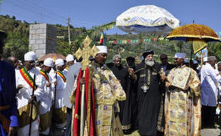السبت 3 اكتوبر 2015 م استقبال شعبي مفرح ومبهج من شعب جوندر باثيوبيا لقداسة البابا والوفد الكنسي اصطف مئات الالاف من الشعب الاثيوبي علي طول طريق المدينة العظيمة حاملين ال صلبان والإعلام والورود وسعف النخل وهتفوا ورحبوا بقداسة البابا وانقلبت المدينة كلها وخرج الشعب مكتظا في كل شوارع المدينة وعلي أسطح المنازل وفي البلكونات وهتفوا ورحبوا بخليفة مارمرقس وتحدث البابا اليهم شاكرا محبتهم وترحابهم وقال لهم انا شاعر بعمق مشاعر قلوبكم وفرحكم الغامر وايمانكم الشديد وكنت اسمع عنكم ولكن فرحت بالاكثر عندما شاهدت وجوهكم المقدسة وانا فرحان من ترديدكم ان مارمرقس ابونا والإسكندرية امنا وانا جئت إليكم لأحمل إليكم بركات مارمرقس وكنيسة الاسكندرية |