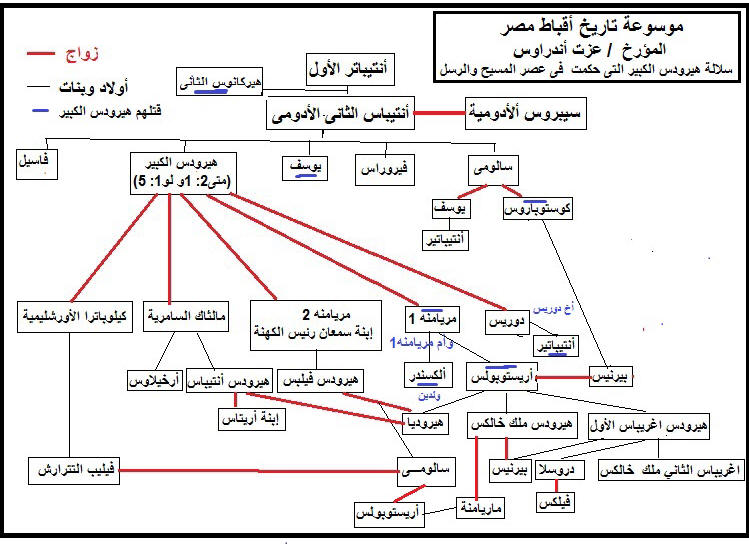 | Encyclopedia - أنسكلوبيديا موسوعة تاريخ أقباط مصر - Coptic history بقلم المؤرخ / عزت اندراوس شجرة عائلة هيرودس الكبير التى حكمت الأراضى المقدسة |